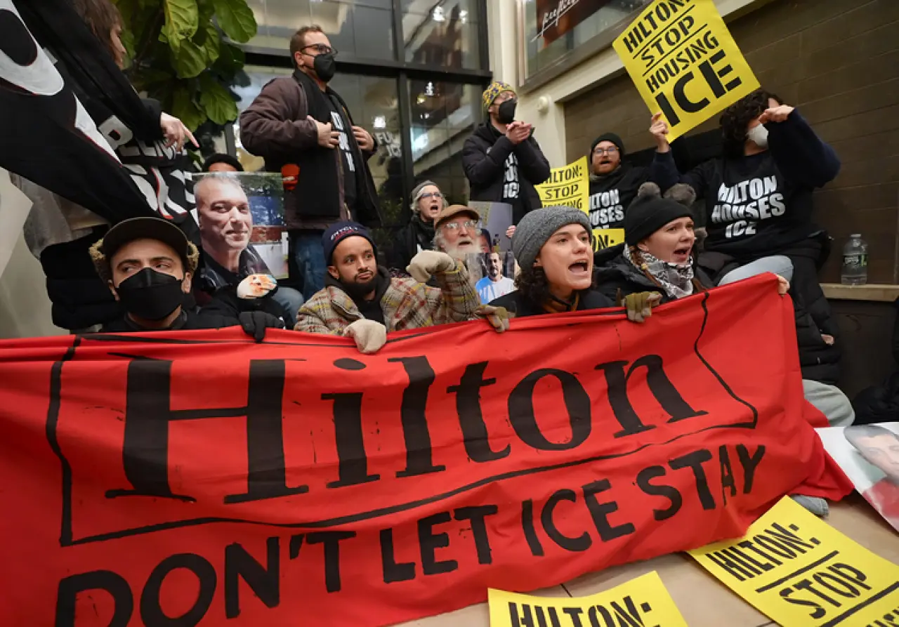 ABD'nin New York kentinde, Donald Trump yönetiminin göçmen politikalarına yönelik tepkiler sokağa taştı. Manhattan bölgesinde Göçmenlik ve Gümrük Muhafaza (ICE) ekiplerinin konakladığı öne sürülen bir otelin lobisini işgal eden yaklaşık 100 kişilik grup, federal ajanlara ve otel yönetimine yönelik protesto gerçekleştirdi. Emniyet güçlerinin "dağılın" uyarısına uymayan ve lobiden ayrılmayı reddeden çok sayıda eylemci gözaltına alındı. Yetkililer, gözaltı sayısı ve suçlamalar hakkında henüz resmi bir detay paylaşmadı.