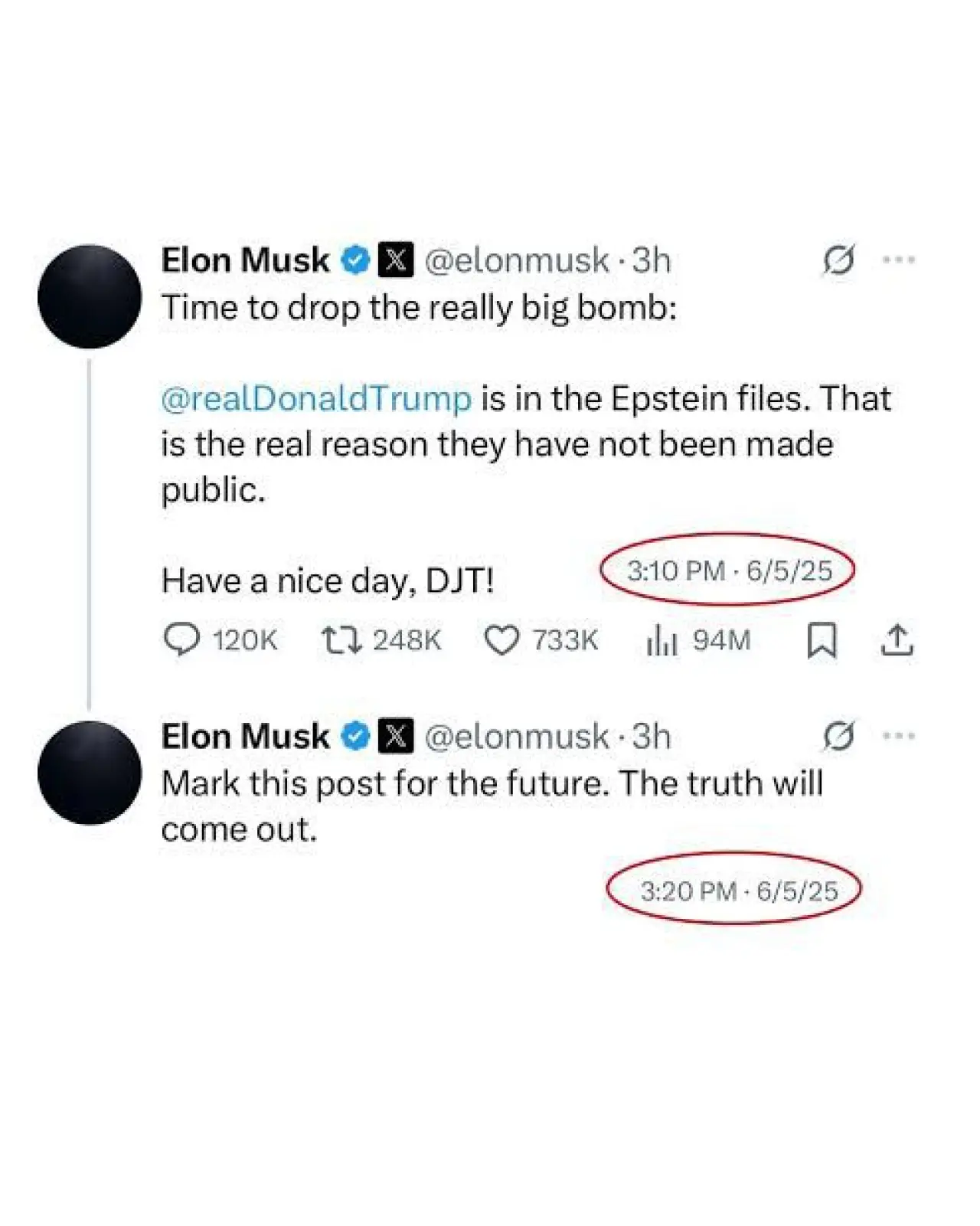 - “Şimdi asıl büyük bombayı patlatma zamanı: @realDonaldTrump, Epstein dosyalarında yer alıyor. Bu dosyaların kamuoyuna açıklanmamasının gerçek nedeni bu. İyi günler, DJT!”