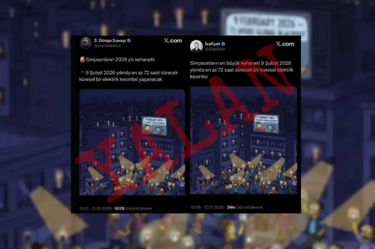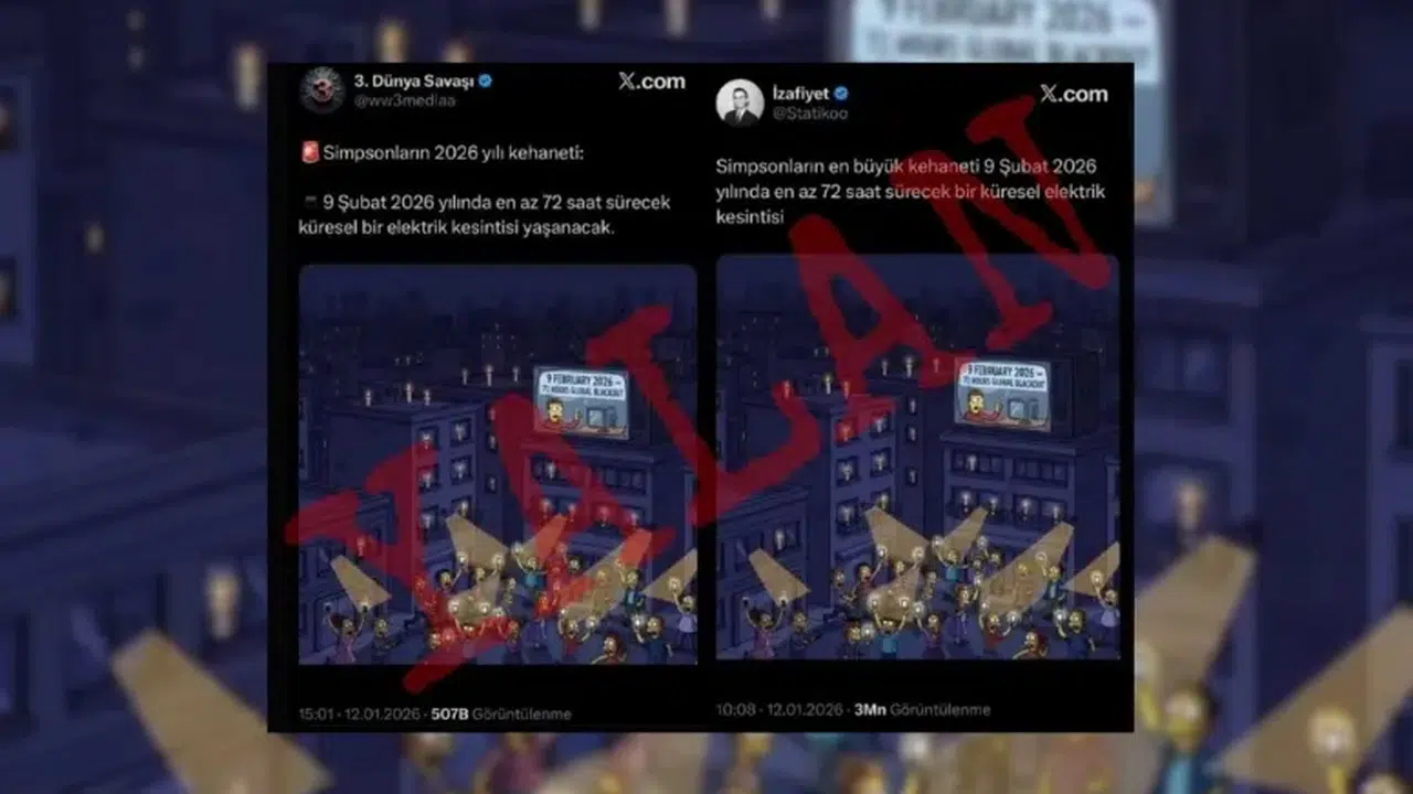 ABD merkezli animasyon dizisi The Simpsons üzerinden yürütülen "geleceği tahmin etme" temalı dezenformasyon kampanyalarına bir yenisi daha eklendi. Sosyal medyada hızla yayılan ve 9 Şubat 2026 tarihini işaret eden elektrik kesintisi iddiaları, geniş kitlelerde endişeye yol açtı. Ancak yapılan detaylı incelemeler, paylaşılan görsellerin diziye ait olmadığını, yapay zeka araçları kullanılarak kasıtlı olarak üretildiğini ortaya koydu.