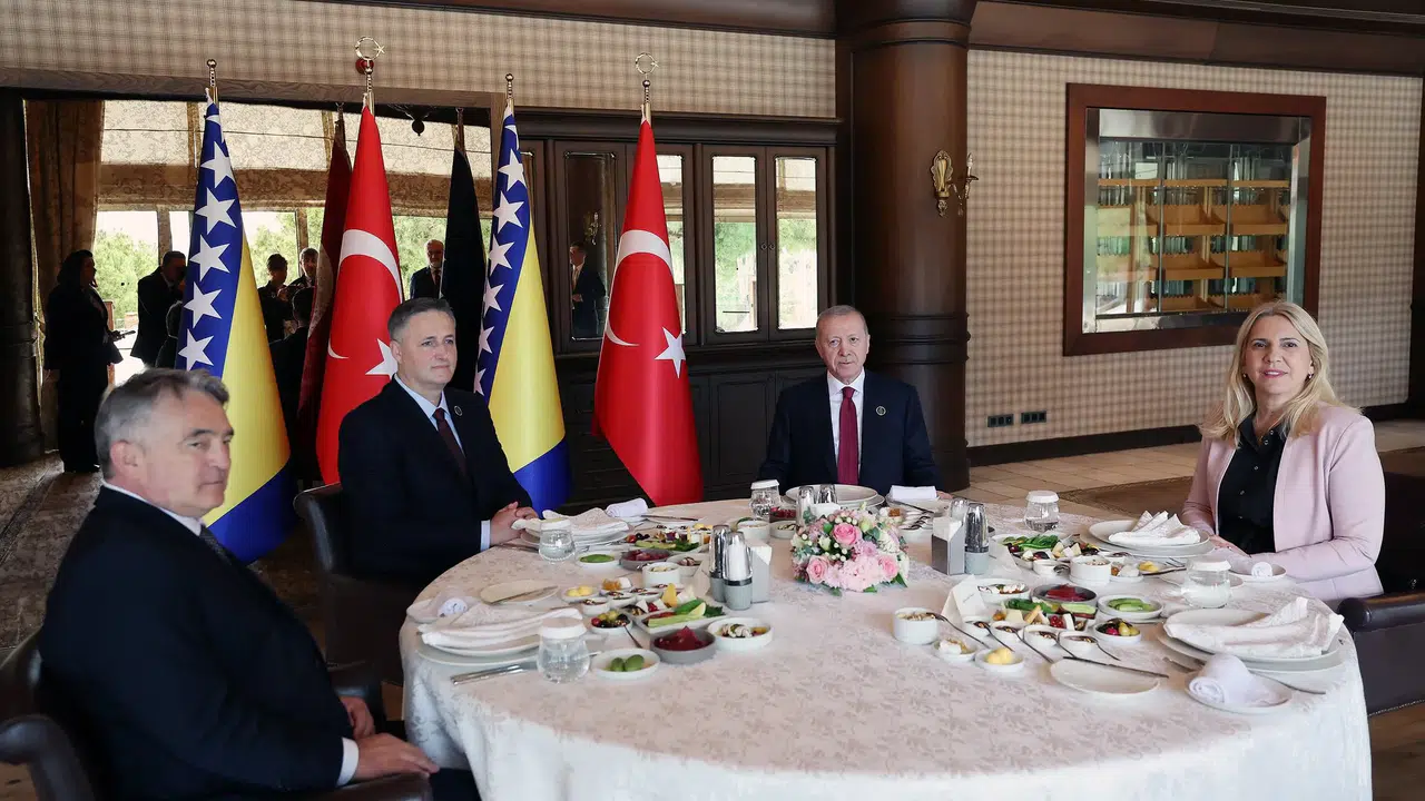 Cumhurbaşkanı Erdoğan, 5. Antalya Diplomasi Forumu için Türkiye'de bulunan Bosna Hersek Devlet Başkanlığı Konseyi üyeleri Zeljka Cvijanovic, Denis Beirovic ve Zeljko Komsic ile çalışma kahvaltısında bir araya geldi.