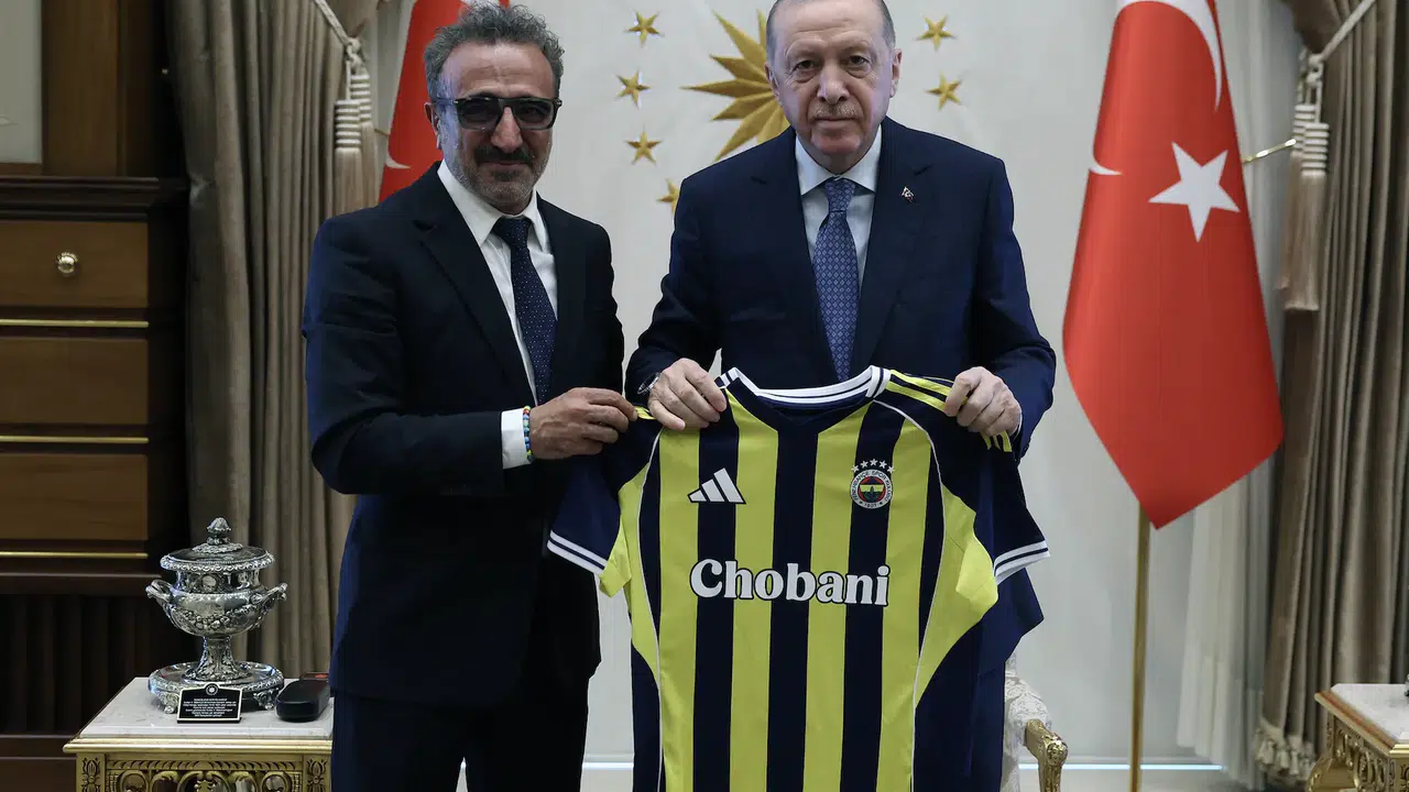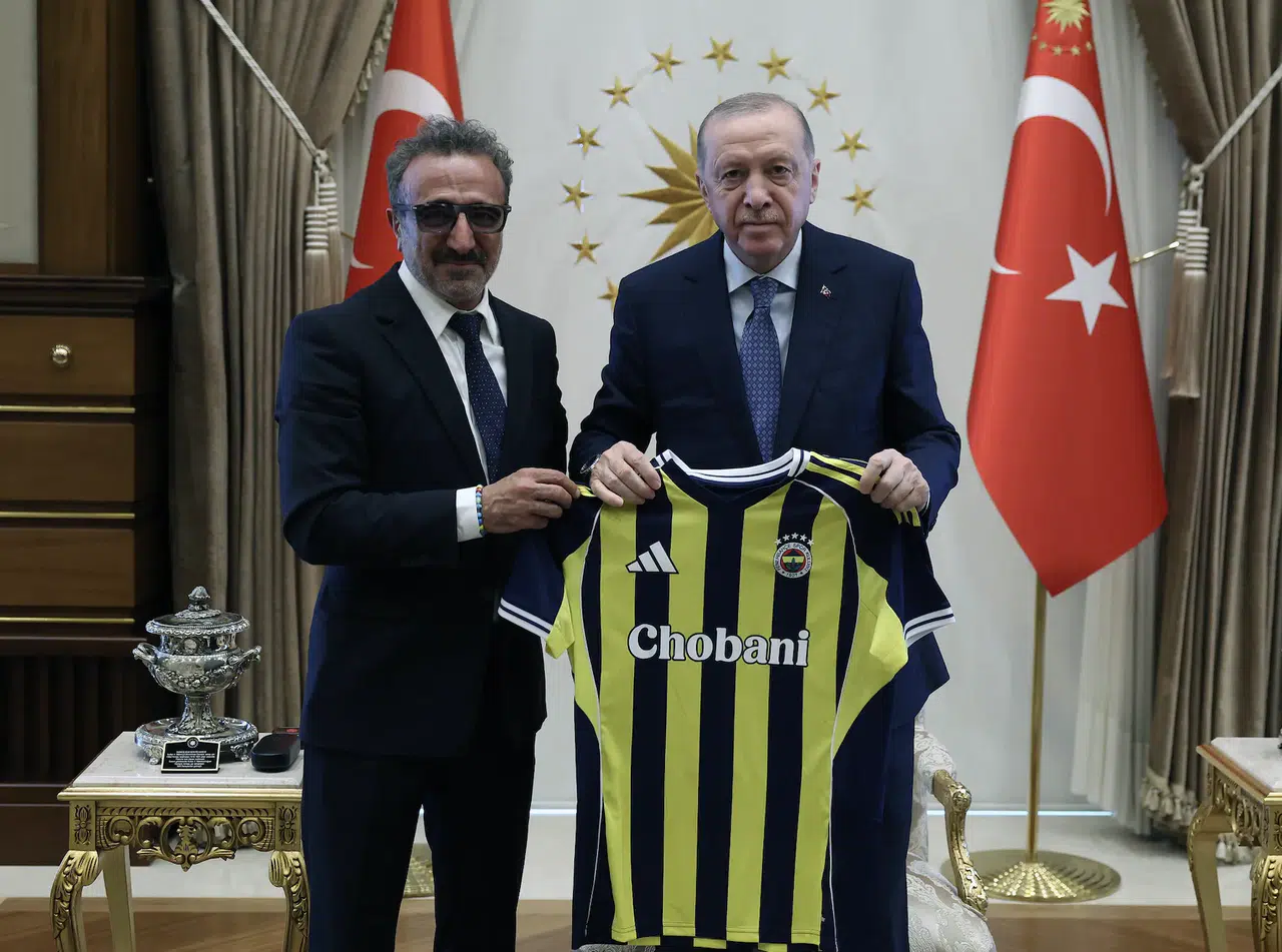 Cumhurbaşkanlığı Külliyesi'nde gerçekleşen görüşmede Ulukaya, Cumhurbaşkanı Erdoğan'a isminin yazılı olduğu bir Fenerbahçe forması takdim etti.