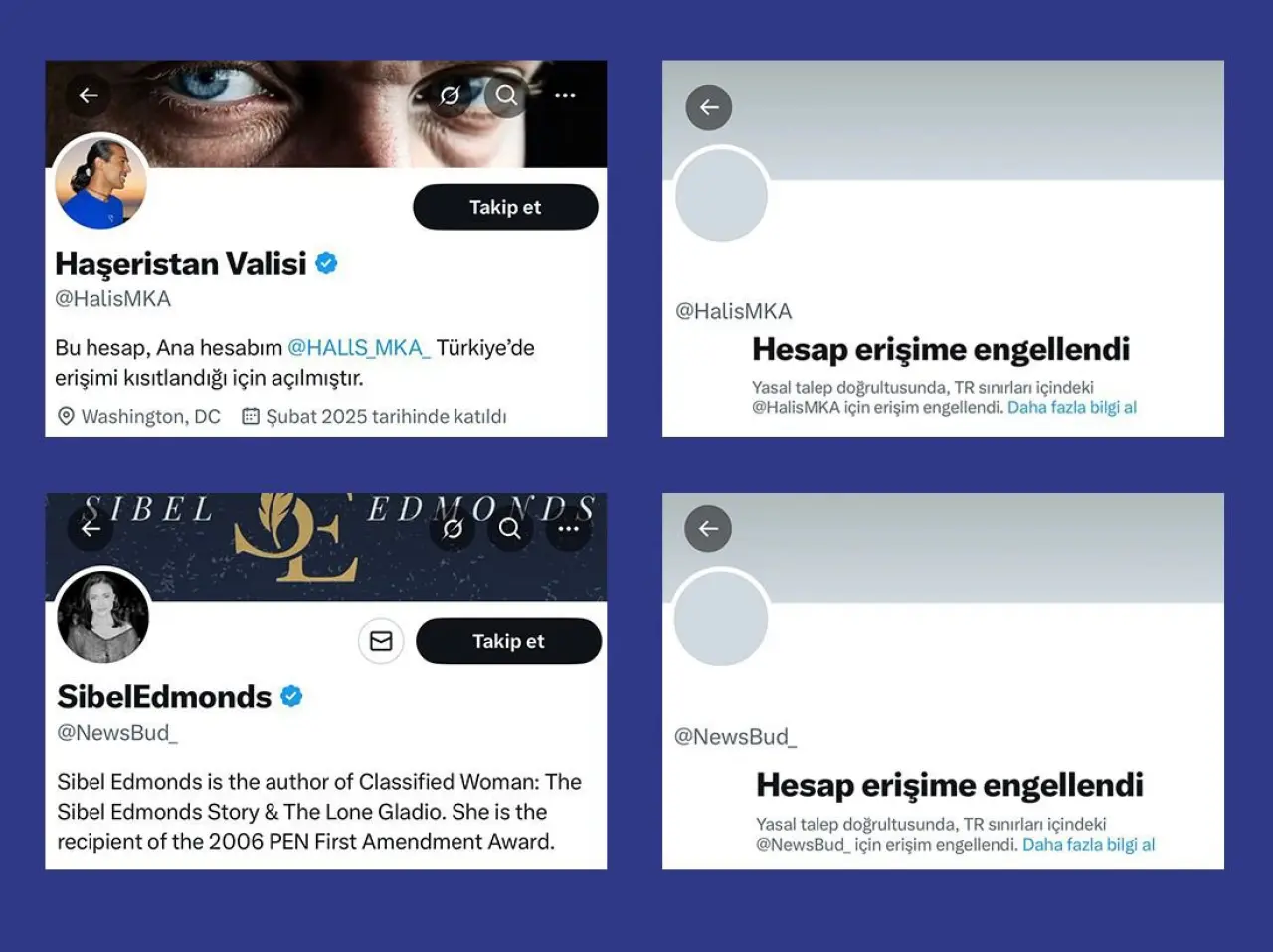 Sosyal medyada Türkiye Cumhuriyeti'ni hedef alan paylaşımlarıyla dikkat çeken eski FBI çalışanı Sibel Edmonds ve FETÖ firarisi Halis Aydoğan’ın hesapları hakkında işlem yapıldı.
