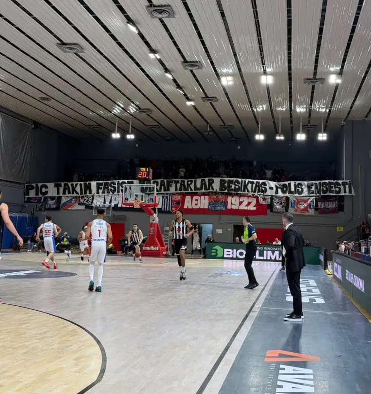 Beşiktaş GAİN Erkek Basketbol Takımı’nın BKT EuroCup kapsamında Yunanistan deplasmanında Panionios Athens ile karşılaştığı müsabakada, tribünlerde büyük bir skandal yaşandı. Ev sahibi ekip taraftarları tarafından açılan ve doğrudan Türk milletini, emniyet teşkilatını ve milli değerleri hedef alan hakaret içerikli pankart, maçın önüne geçti. Yaşanan bu provokasyonun ardından Beşiktaş JK, resmi kanalları aracılığıyla sert bir açıklama yayımladı.