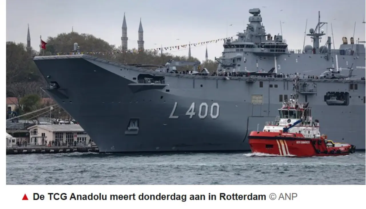 NATO'nun Steadfast Dart 26 Tatbikatı çerçevesinde, Türk Deniz Kuvvetlerine bağlı TCG Anadolu SİHA gemisi ve beraberindeki üç savaş gemisi, Rotterdam Limanı'na ulaştı. Devasa boyutlarıyla şehrin kalbinde, Erasmus Köprüsü'nün yanı başında konumlanan gemiler, Hollanda medyasının dikkatini çekti. Yerel yayın organları, Türk donanmasının stratejik gücünü ve şehrin merkezindeki bu ihtişamlı görünümünü sayfalarına taşıdı.