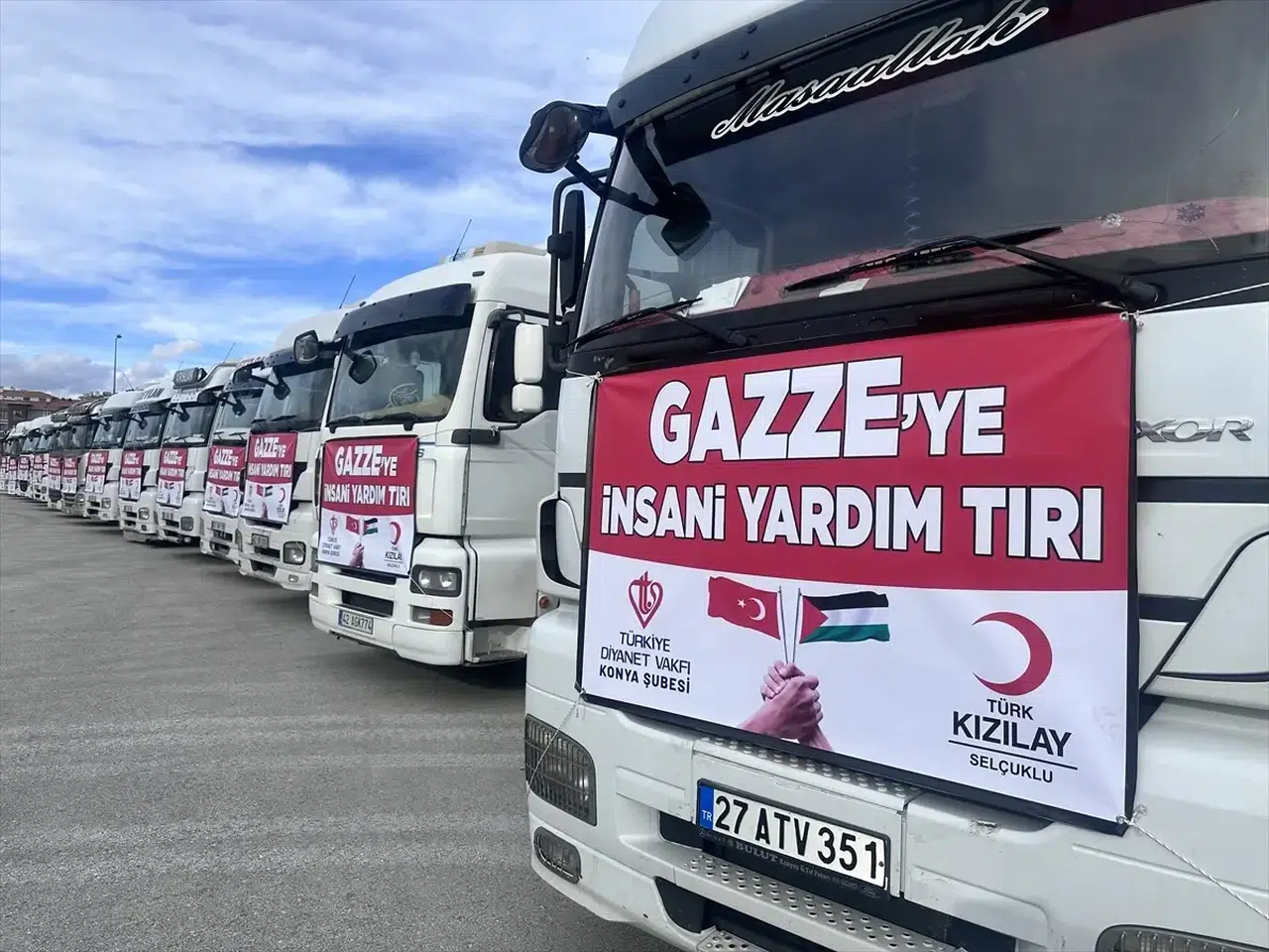 Konuşmaların ardından yapılan dua ile 15 yardım tırı Gazze’ye doğru yola çıktı.